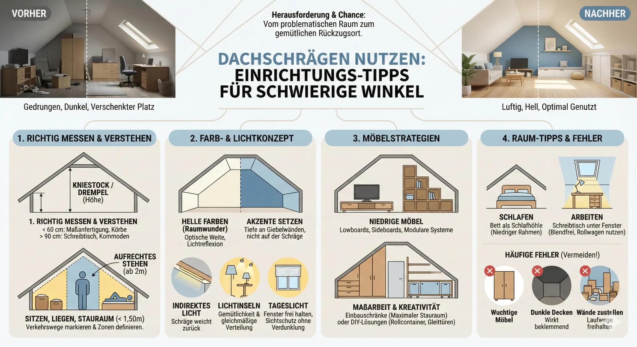 Dachschrägen nutzen: Einrichtungs-Tipps für schwierige Winkel