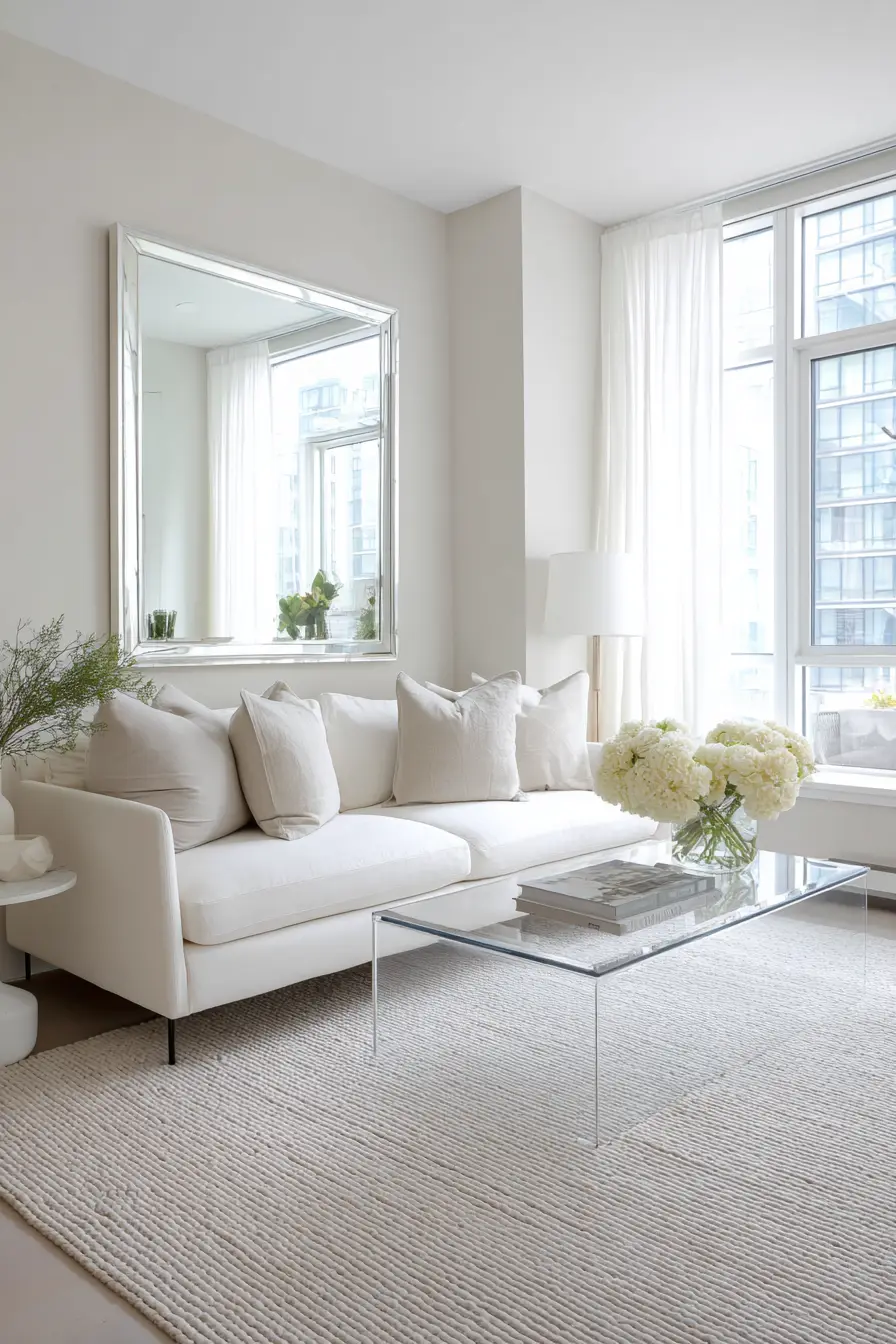- Platzierung: Hänge einen großflächigen Spiegel gegenüber eines Fensters auf. Er fängt das natürliche Licht ein und spiegelt den Ausblick wider, was die Illusion eines zusätzlichen Durchbruchs erzeugt.